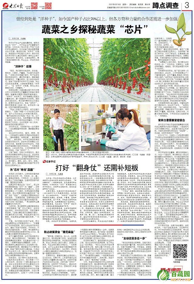 記者了解到,包括三木種苗在內,壽光近年來共培育起7家種業(yè)龍頭企業(yè),自主研發(fā)蔬菜品種達到140個,全市國產蔬菜種子市場占有率已由2010年的54%提升到目前的70%以上,其中黃瓜、圓茄、絲瓜、苦瓜、豆類、西葫蘆、甜瓜、櫻桃番茄等作物國產種子市場占比達到90%以上。