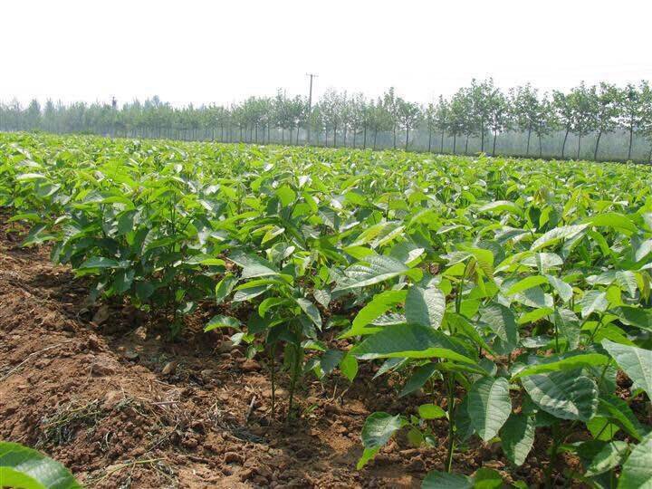 育山核桃苗,采用當年秋新收獲的果實,除去外果皮,晾曬多半干,在當年秋天,選擇一塊山坡地(已收獲的玉米或大豆地塊也可)平整土地深15--20厘米。